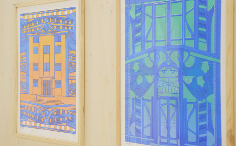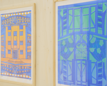 "À travers cette série d'illustrations, Camille propose une mise en scène de quatre lieux emblématiques de la vie nancéienne. Chaque architecture est réinterprétée en décor où les spécificités architecturales typiques du mouvement Art déco sont mises en valeur, comme une sorte de scène de théâtre. Chaque image est l’occasion pour l’artiste de se pencher sur les spécificités graphiques des lieux, mais aussi sur leurs histoires. Ainsi, Camille crée un dialogue illustré entre passé avec les formes emblématiques de l’Art déco et présent, avec les usages d’aujourd’hui. Le tout est mis en scène dans un ensemble de formes mêlant architecture, décors et rythmes répétitifs inspirés du mouvement Art déco.